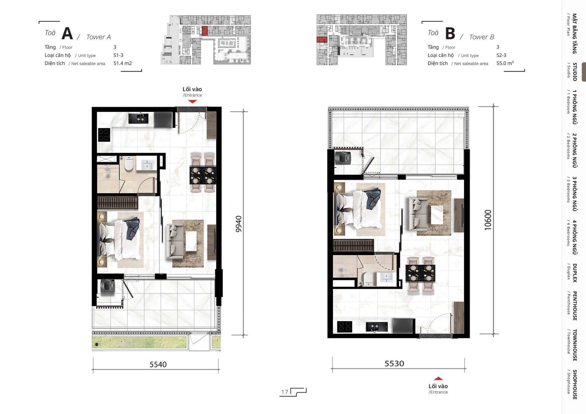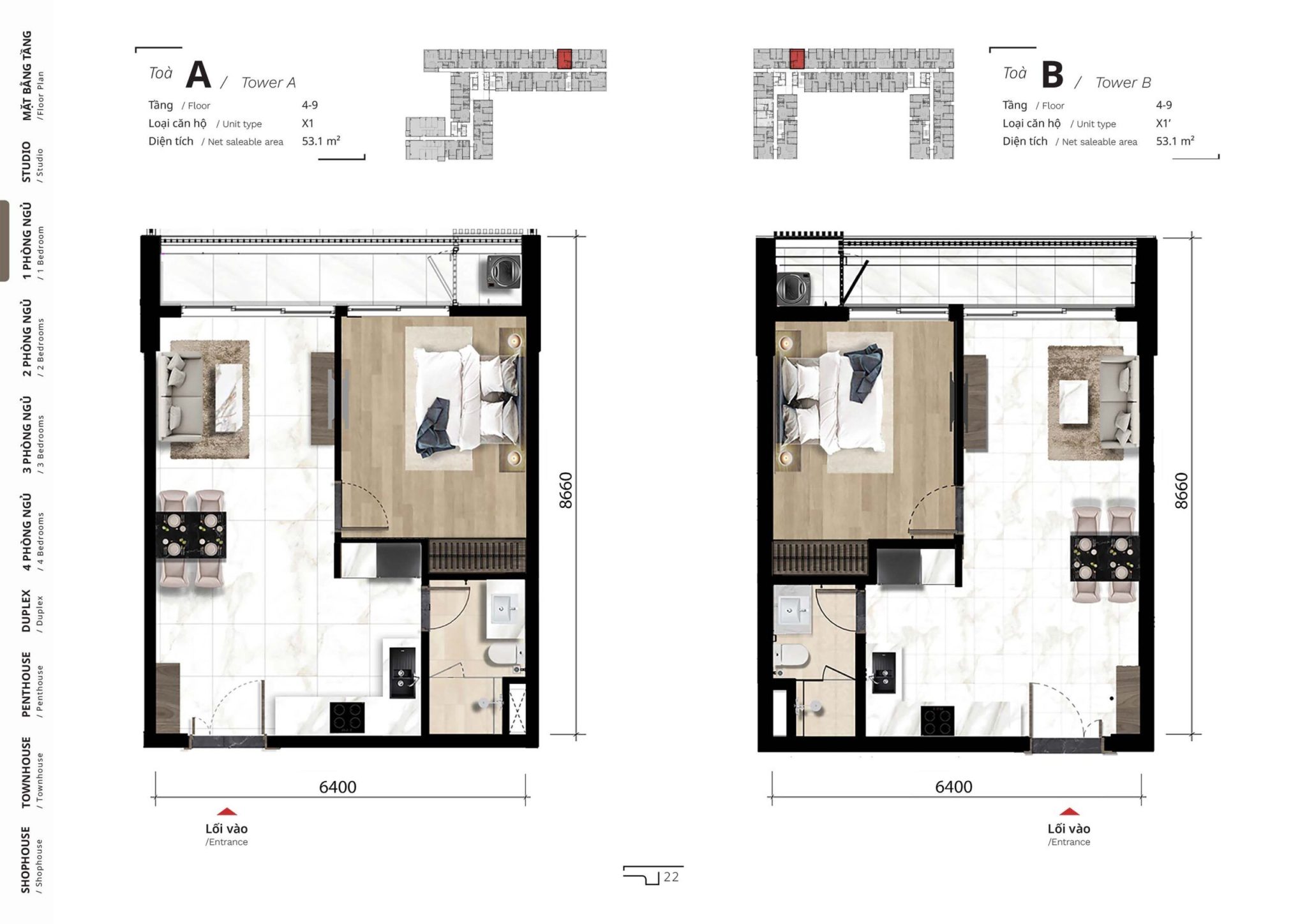 | Loại Hình | 44 m2 ~ 161 m2 (Dự kiến) từ 1 PN đến 4 PN |